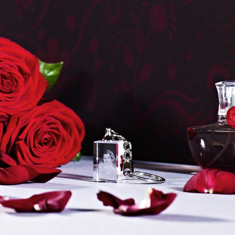 Das Foto der Liebsten immer dabei, der Schlüsselanhänger macht es möglich. Ihr Foto wird in zweidimensionaler Ausführung im Viamant Glas eingebracht. Das Viamant Glas hat dabei gerade die richtige Größe um als ganz persönlicher Schlüsselanhänger zu glänzen. Das Viamant Glas in der Größe 15x20x30mm ist mit extrem harter UV Klebetechnik mittels einer Kette am Schlüsselring verbunden.