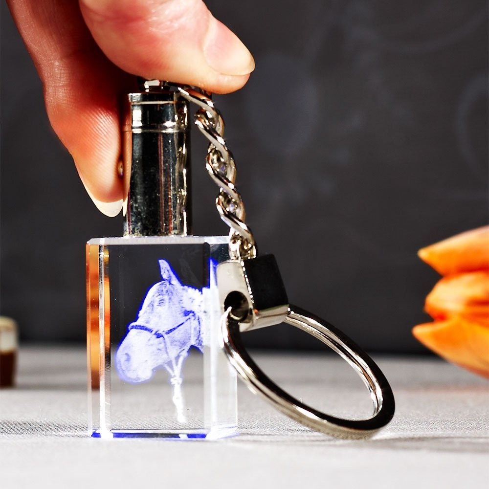 - Material: hochwertiges, optisch reines Viamant Glas, Schlüsselring aus Metall