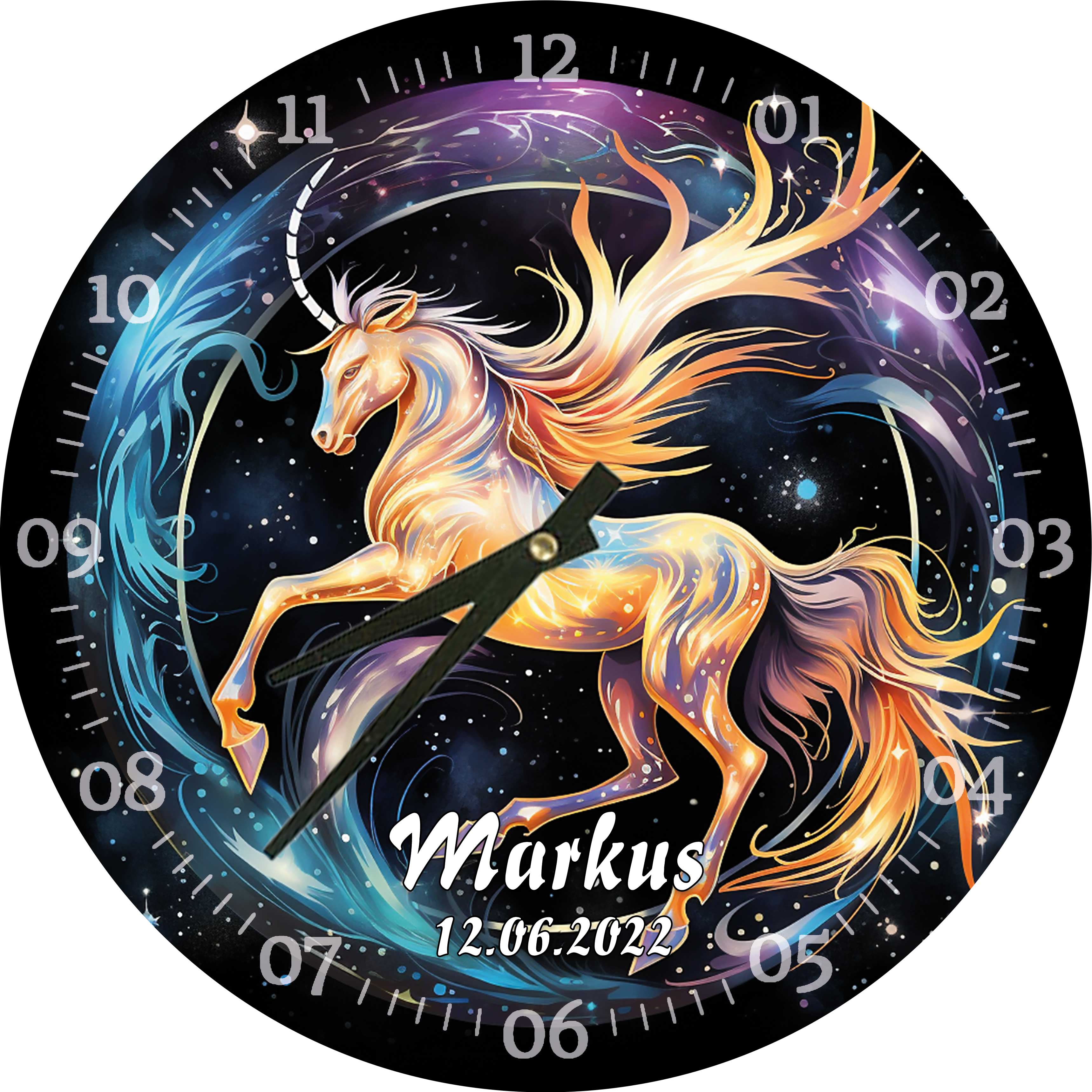 Glasuhr 29cm - Sternzeichen Glasuhr mit 29cm Durchmesser als Sternzeichen inkl. Uhrwerk zur Wandmontage mit oder ohne Personalisierung erhältlich