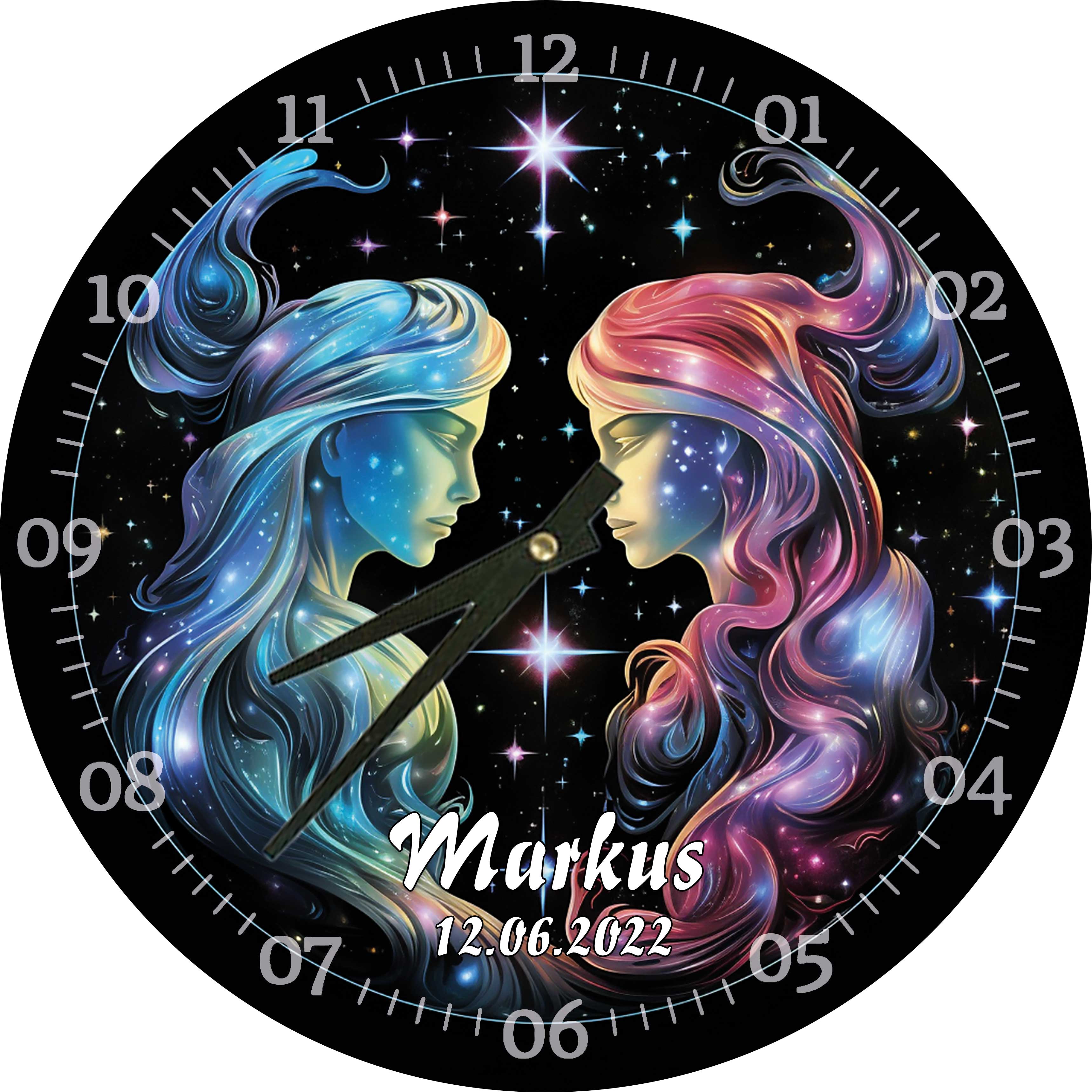Glasuhr 29cm - Sternzeichen – Zwilling01